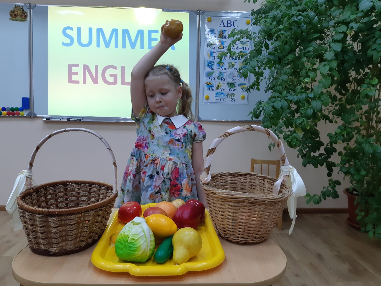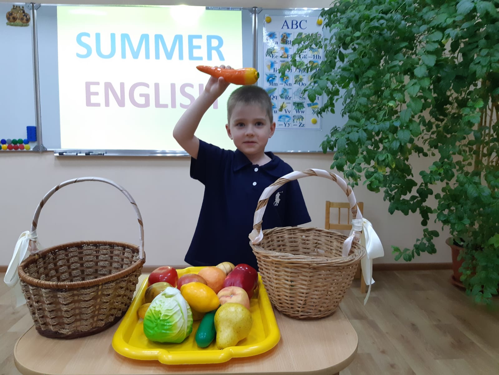 Английский язык для дошкольников в нашем Центре – это всегда что-то необычное и сказочное. Поэтому малыши с радостью посещают уроки не только в учебном году, но и летом. Те результаты, которые продемонстрировали дети вместе с учителем на итоговых уроках летнего интенсива, особенно порадовали родителей. А сюжет – самый летний: поездка в деревню! В речи малыши уверенно использовали названия различных видов транспорта, растений, насекомых, овощей и фруктов, которые они собирали в корзинки в саду и огороде под звонкое пение птиц. В сюжет прекрасно вписались 5 музыкальных произведений. Здесь были и ритмичная «Number song», и веселые «Colour song» и «Chicken and Fish», и нежный «Вальс цветов», и трогательная «What’s the matter?». Кульминацией урока стало инсценированние сказки «Репка», которая, конечно, была с сюрпризом! Яркий демонстрационный материал, способствующий развитию критического мышления детей, интересные презентации, сингапурские методики и другие необычные и интересные формы работы – всё это могли увидеть родители на открытых уроках. Уверенная демонстрация знаний, радость на лицах детей, удивительная атмосфера подтвердили: время проведено с пользой и удовольствием! Родители с радостью поделились своими впечатлениями:
